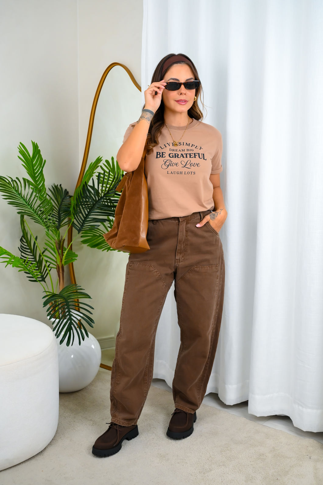 Modelo veste tamanho P nas fotos