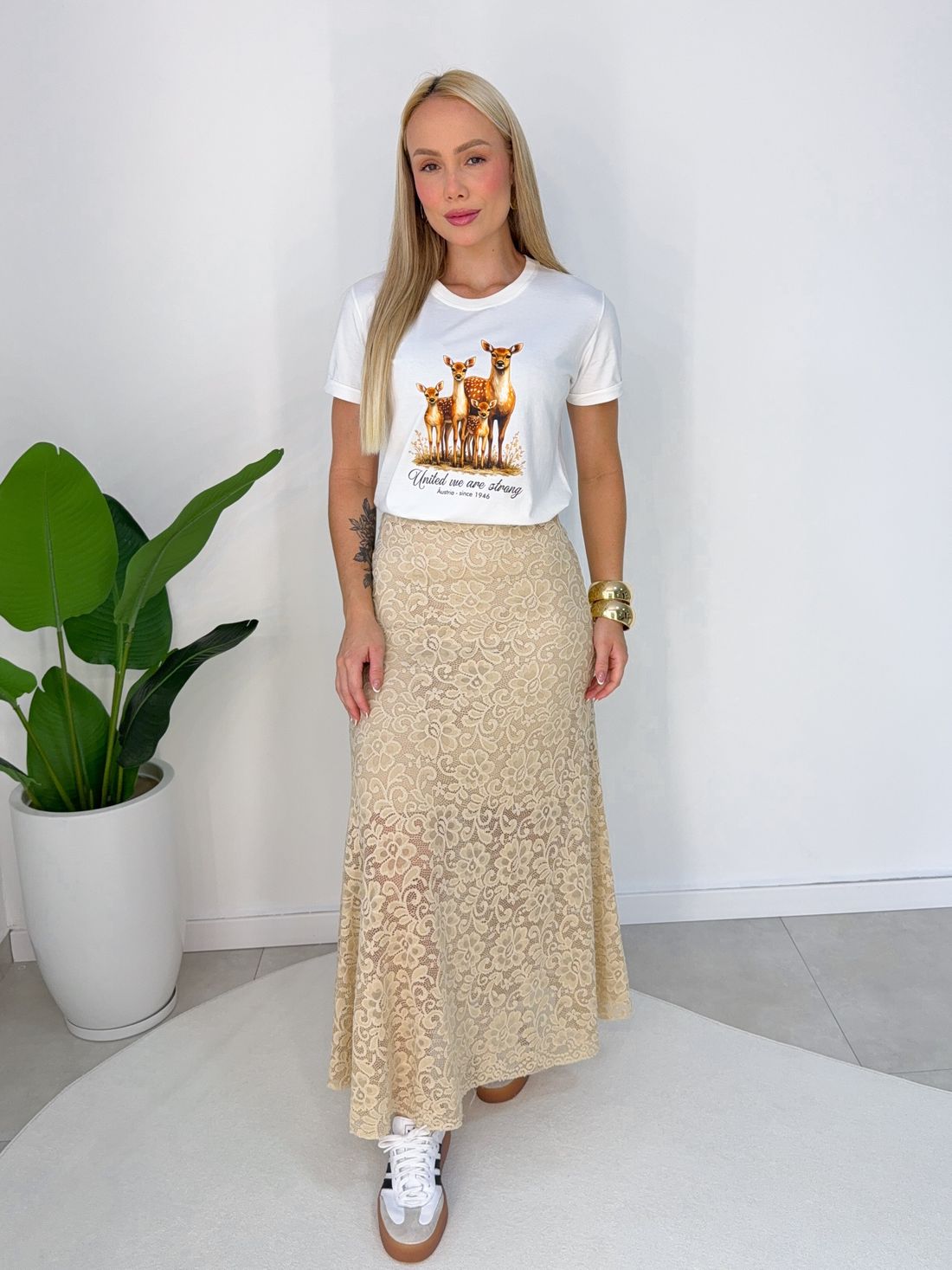 Modelo veste tamanho P nas fotos